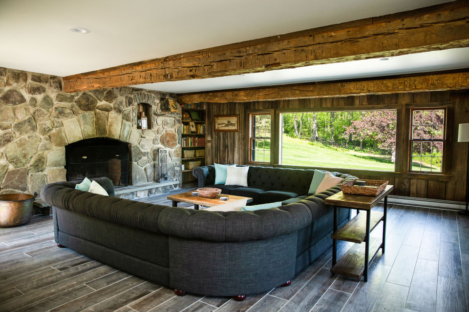 The Sylvan Ridge farmhouse dates back to the mid-1800s, when it was built as a residence for the Palmer family who first settled and farmed the hillside. It was adapted and added onto as the property's unique history unfolded, from farm to camp to dwelling to venue. Today the farmhouse boasts four spacious bedrooms, three bathrooms, four stone fireplaces, numerous common spaces (one of which converts to a fifth bedroom), and a wrap-around covered porch overlooking the barn, pool, and mountains beyond. In addition to being included in the rental fee for larger events using the barn, the farmhouse is available throughout the year for intimate events and vacation rental. Up to twelve guests can lodge overnight, with plenty of space to entertain more in the inviting ambiance of this historic home.